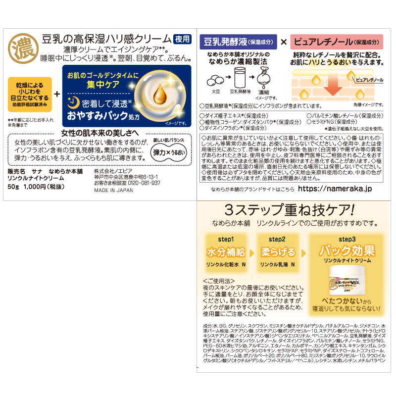 豆乳のリンクルナイトクリーム。ピュアレチノール※1を配合!