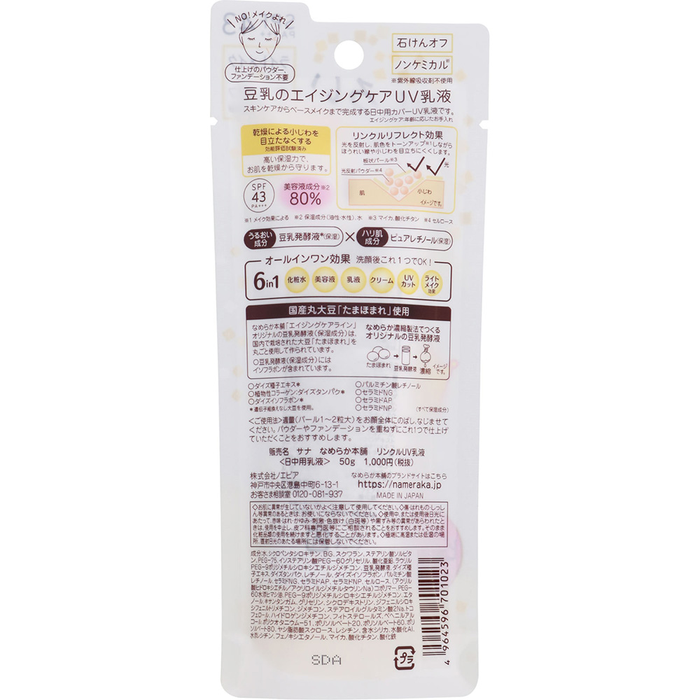豆乳のエイジングケアUV乳液でほうれい線を目立ちにくくします。