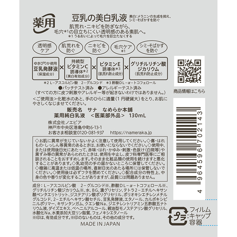 豆乳イソフラボン含有の薬用純白乳液
