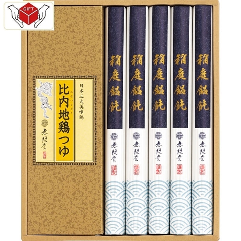 ●稲庭うどん70g×5、比内地鶏つゆ30ml×5