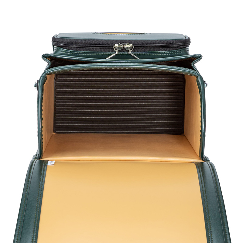 1-8.「背中Wクッション」・・・背あて部分は、低反発と高反発素材の2層構造にすることで、背中とランドセルが広く接地して