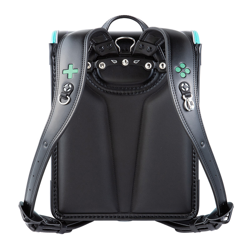1-7.「ブレスレザー」・・・背あてと肩ベルト、下ベルト裏に吸湿と放湿を繰り返す合成皮革「ブレスレザー」を採用。