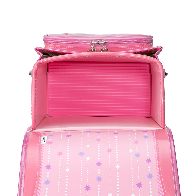 背あて部分は低反発と高反発素材の2層構造で背中とランドセルが広く接地して重さを分散。背負いやすさをサポートします。