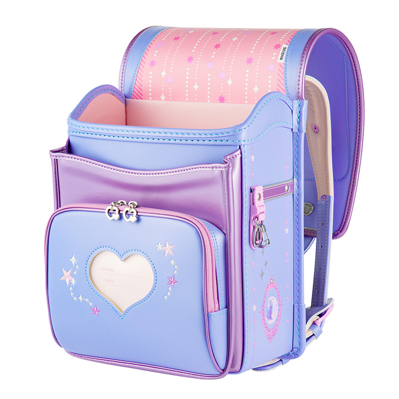 背あて部分は低反発と高反発素材の2層構造で背中とランドセルが広く接地して重さを分散。背負いやすさをサポートします。