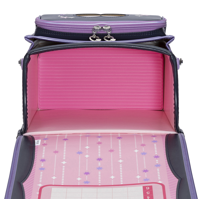 背あて部分は低反発と高反発素材の2層構造で背中とランドセルが広く接地して重さを分散。背負いやすさをサポートします。
