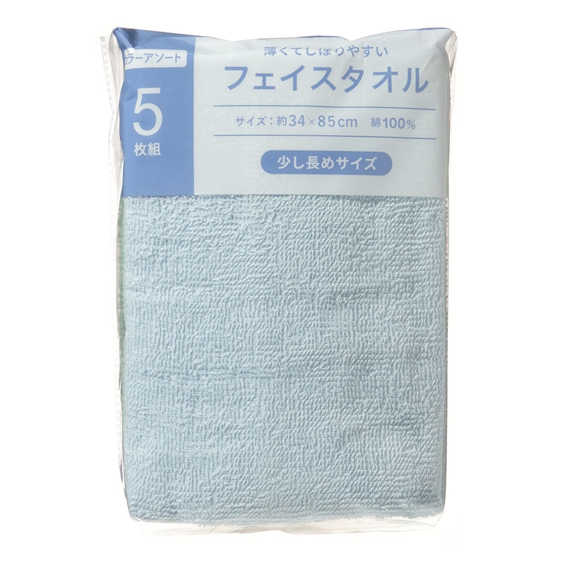 フェイスタオル5枚セット。白とカラーアソートの2種類展開。