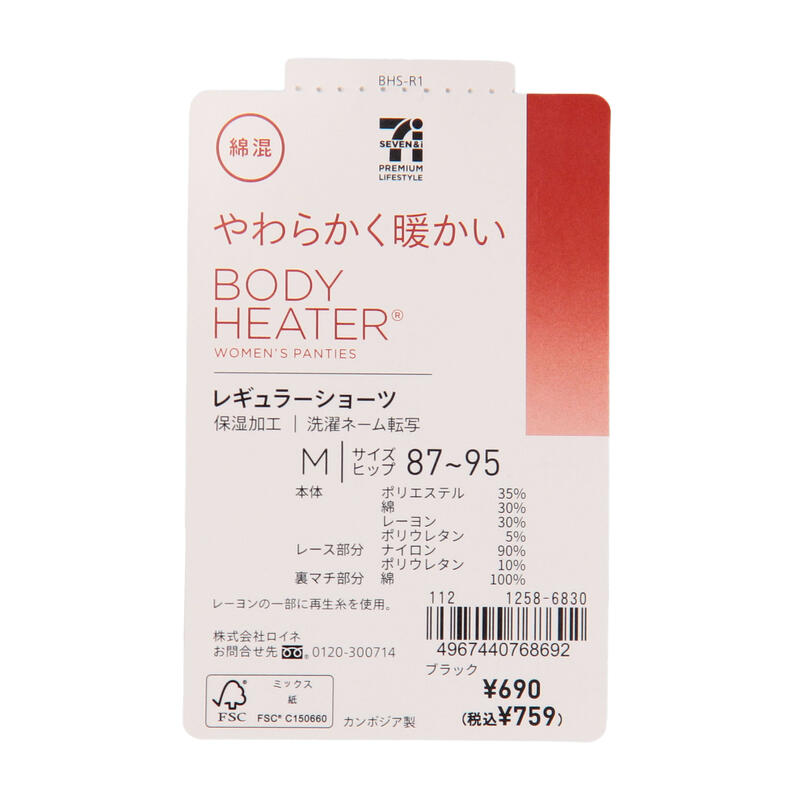 - 本体:ポリエステル35% 綿30% レーヨン30% ポリウレタン5%