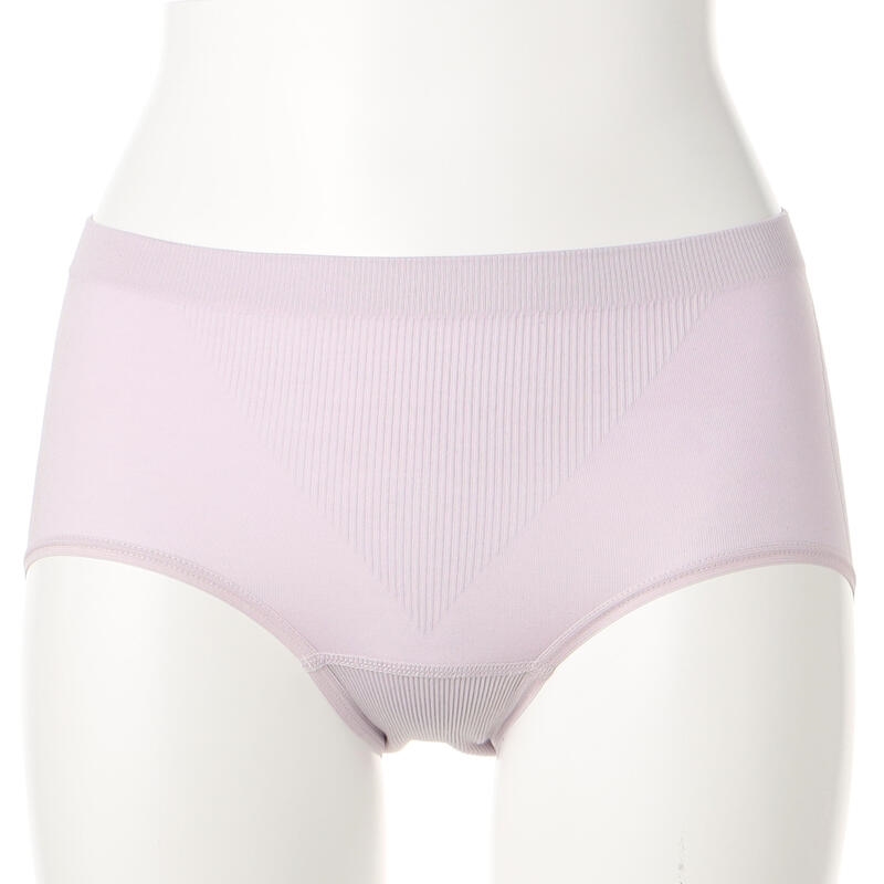 縦横に伸縮する成型編みの綿混ショーツ。
