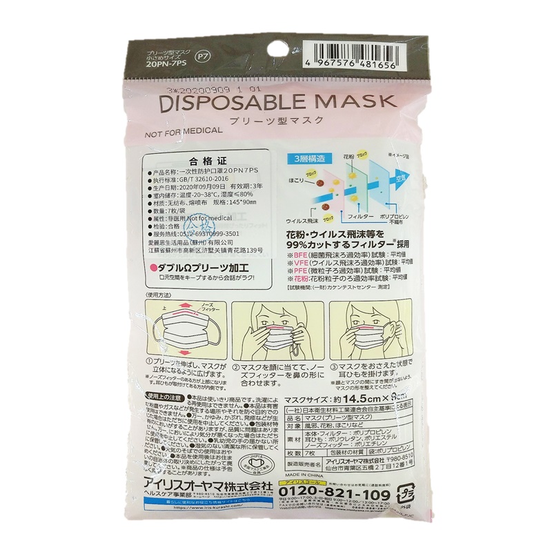 ダブルΩプリーツ加工で口元空間をキープするので会話も楽です。