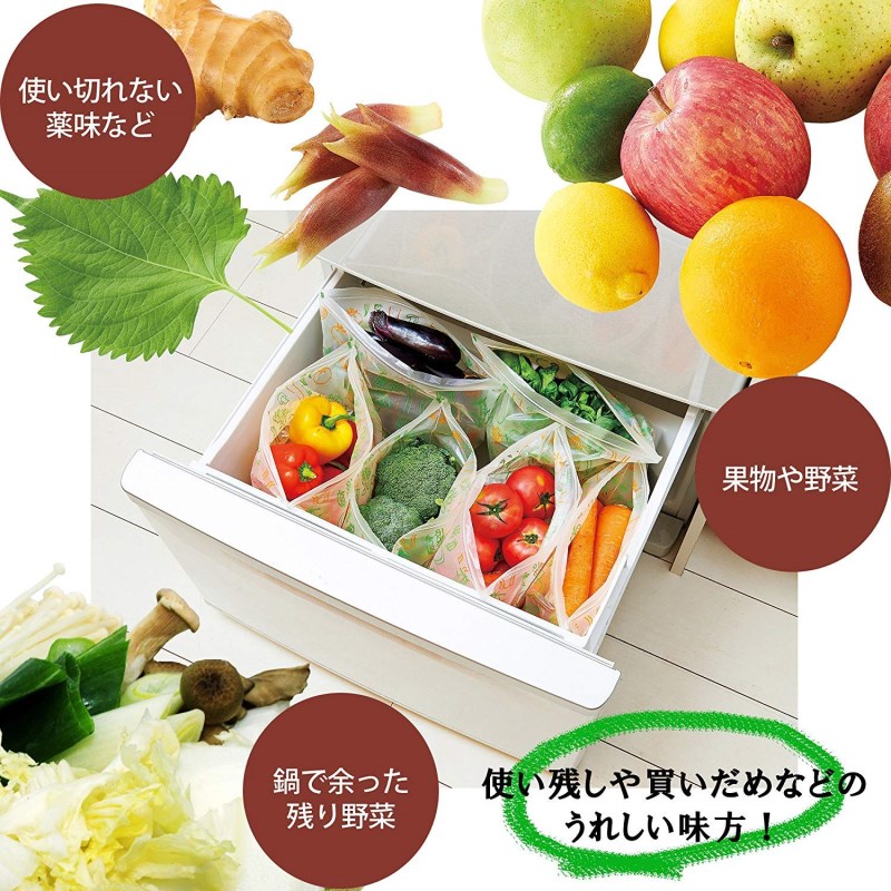 野菜の鮮度を長持ちさせるジップバッグ。