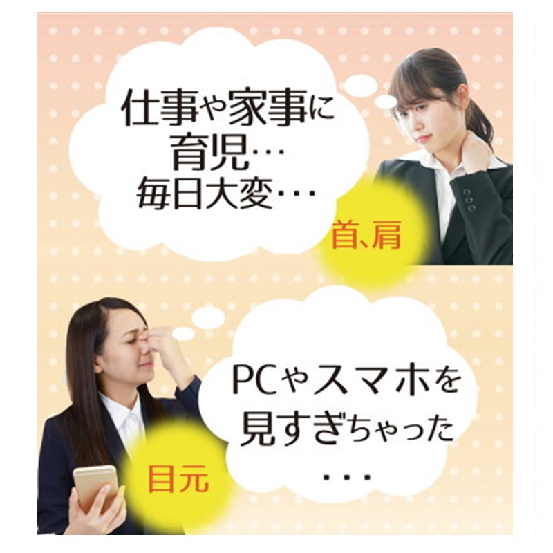 目元、首元(後頭部)を同時に温めることができる温熱商品です。