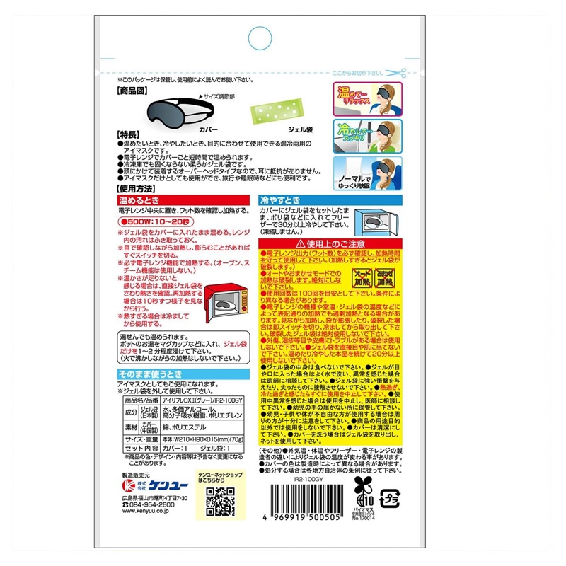 アイマスクだけとしても使用ができ、温・冷でのリフレッシュの他、旅行や睡眠時などにも便利です。