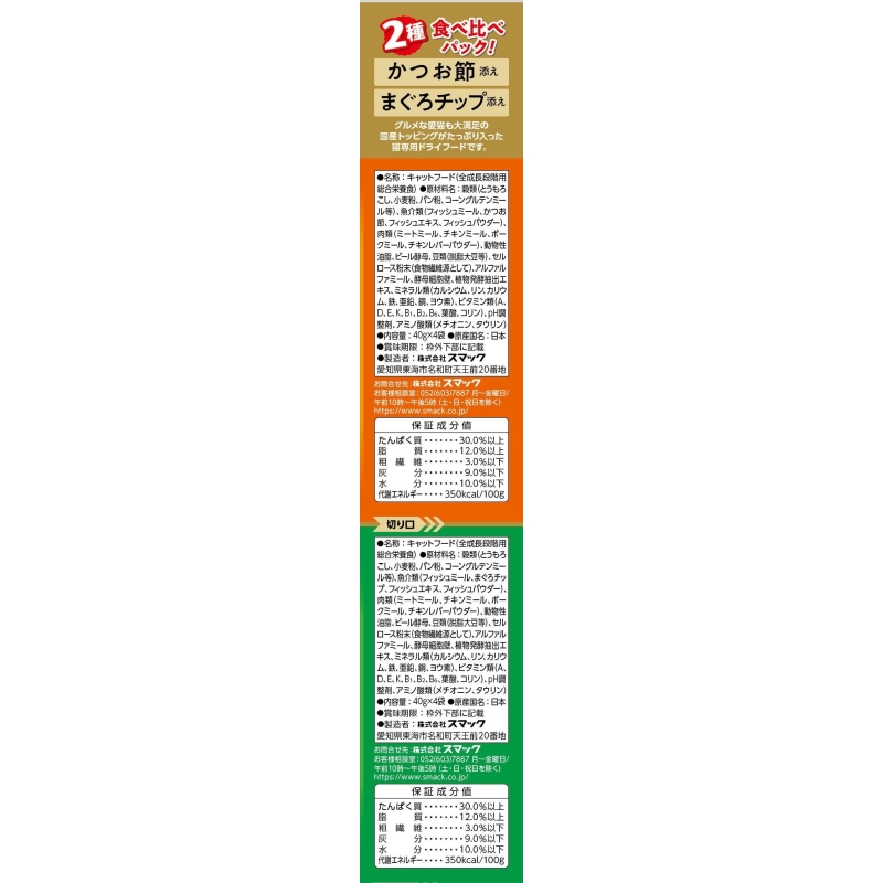 - 【かつお節】穀類(とうもろこし、小麦粉、パン粉、コーングルテンミール等)、魚介類(フィッシュミール、かつお節、