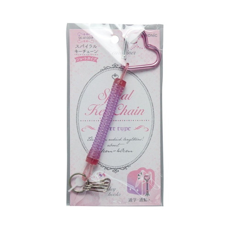 色はピンクで取り付けが簡単なカラビナが付いています。