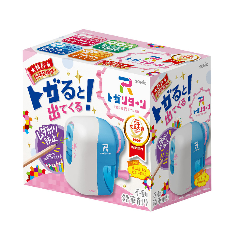 特許!新開発機構で鉛筆がトガると出てくる!削り上がると鉛筆が排出される「リターン式ムダ削り防止」で、