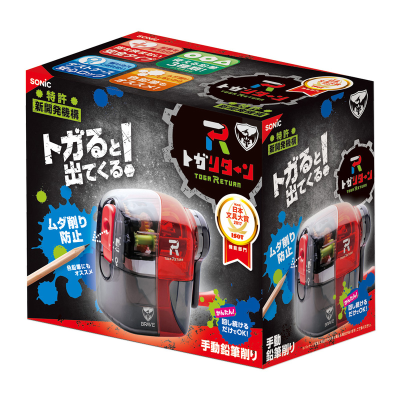 特許!新開発機構で鉛筆がトガると出てくる!削り上がると鉛筆が排出される「リターン式ムダ削り防止」で、