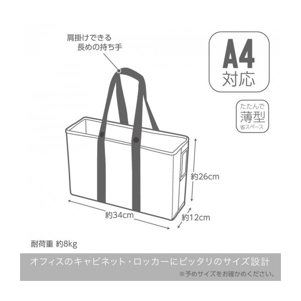 A4対応サイズなので、A4サイズの書類やフォルダの収納にぴったり。