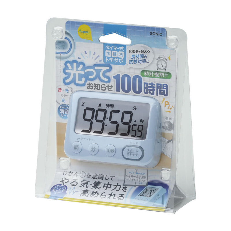 最大100時間まで時間が計れるので、長時間の試験対策や実験などの計測にも使えます。