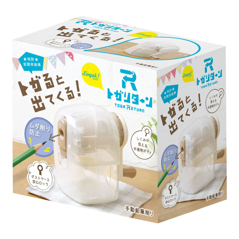 削り上がると鉛筆が排出される「リターン式ムダ削り防止」で、従来品より飛躍的にムダ削りを防止!