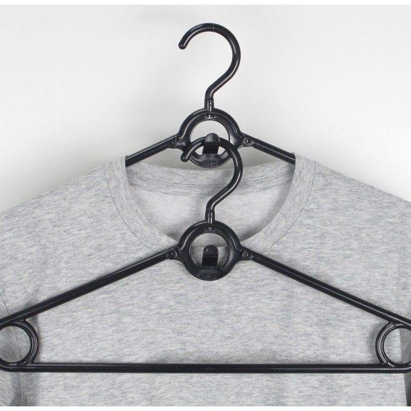 襟元を伸ばさない可倒式フックで衣類を伸ばさず使用できます。