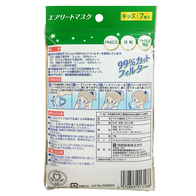 【在庫限り】デルガード エアリートマスク キッズ 7枚入