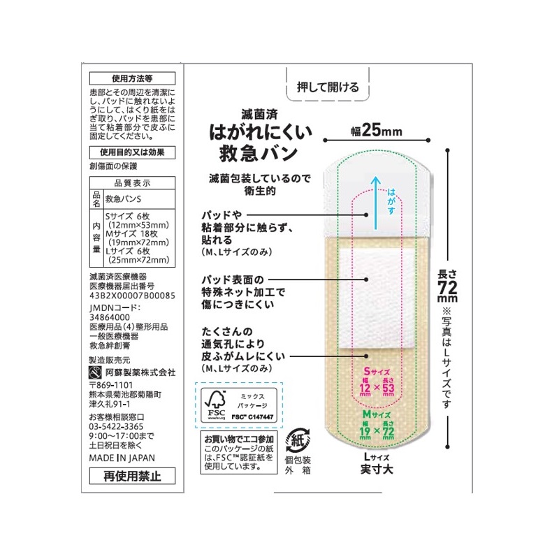はがれにくくしっかりとフィットする救急絆創膏です。