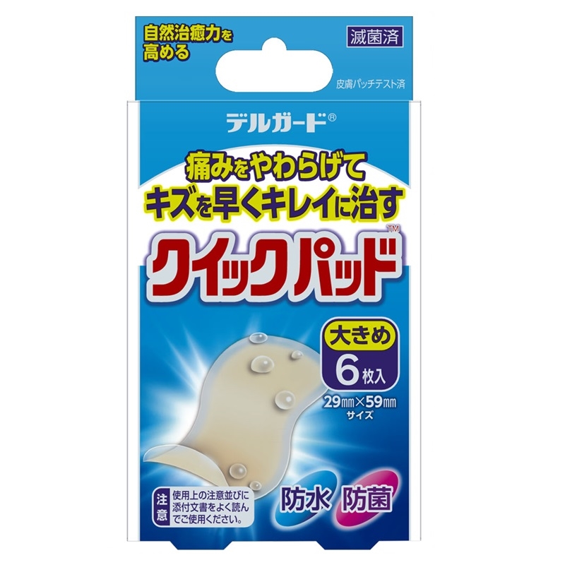 ハイドロコロイド素材のクイックパッドが、キズ口に集まる体液のキズを治す成分をゲル状にしてキズ口に保持することにより、痛み