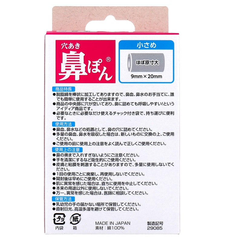鼻水の止血、吸収に使用できるコットン100%の日本製。