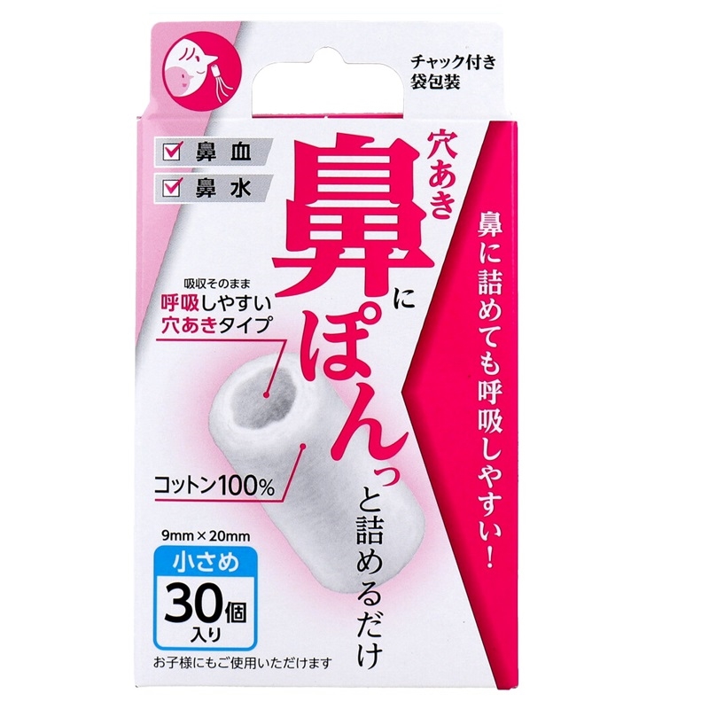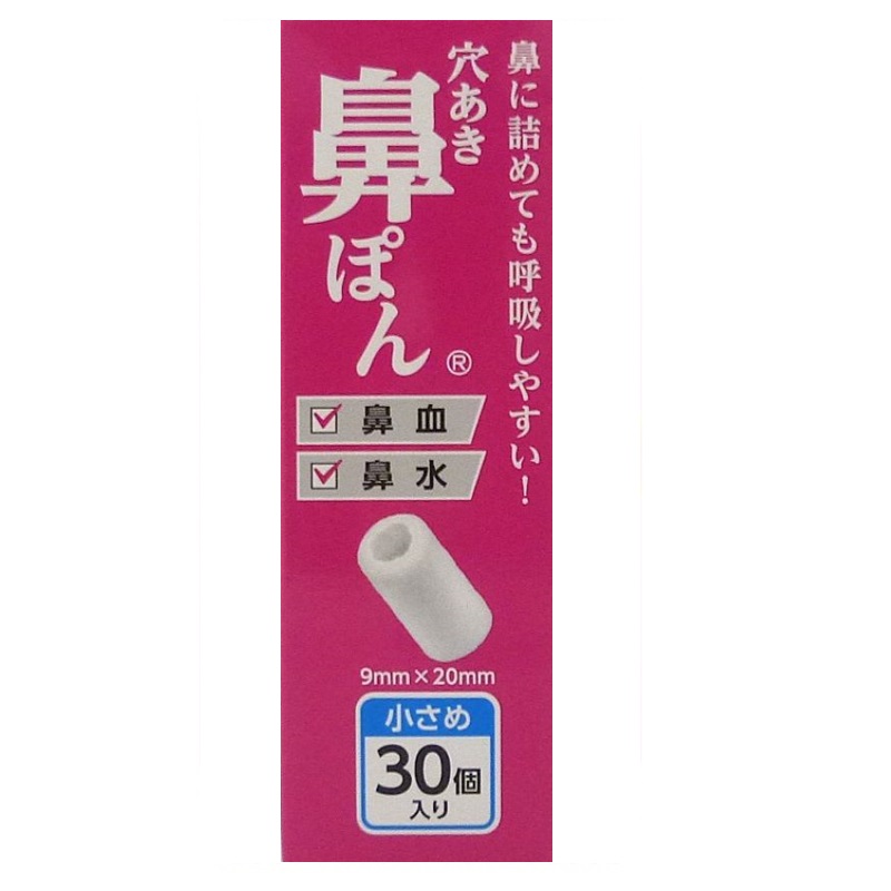 鼻ぽんの中心部に穴が空いており、呼吸しやすい特殊形状で、両鼻に使用しても呼吸でき、鼻の穴に入れるだけで誰でも簡単に鼻血、