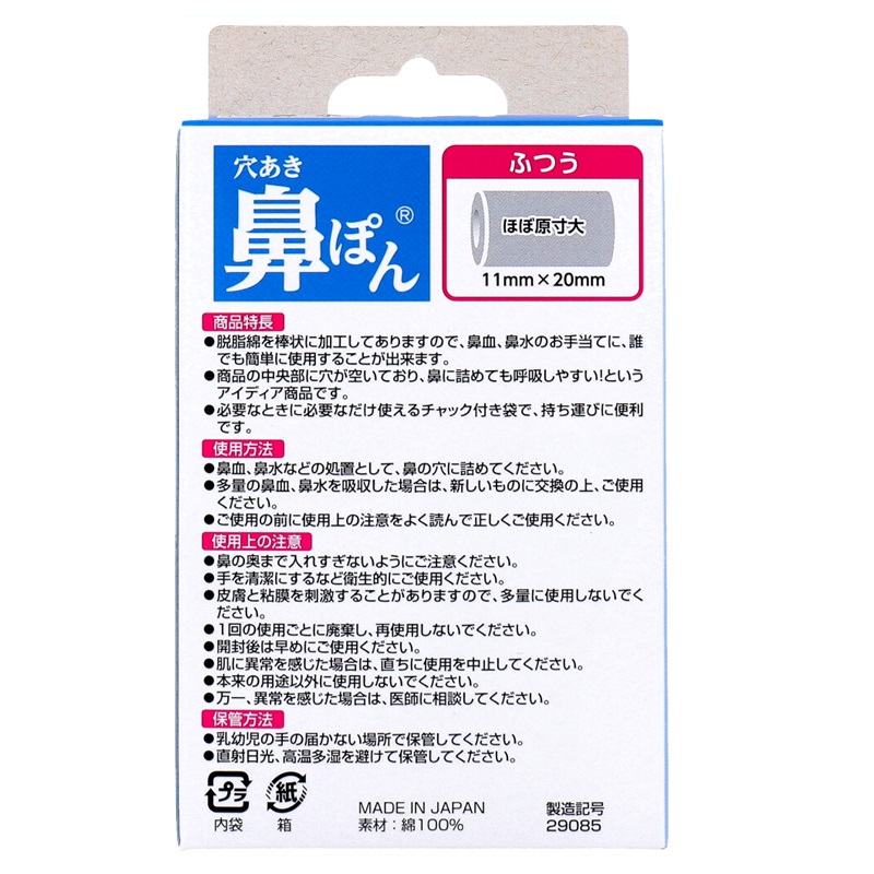 鼻水の止血、吸収に使用できるコットン100%の日本製。