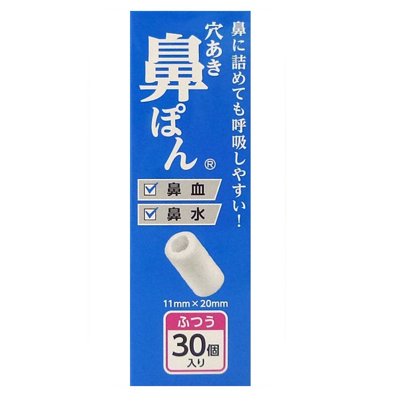 鼻ぽんの中心部に穴が空いており、呼吸しやすい特殊形状で、両鼻に使用しても呼吸でき、鼻の穴に入れるだけで誰でも簡単に鼻血、