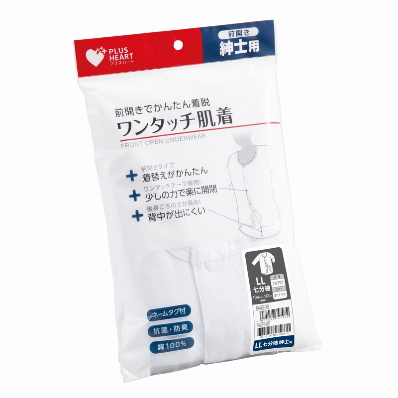 前開きタイプで着替えがかんたんなワンタッチ肌着です。