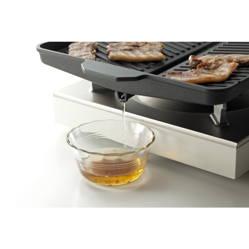 余分な油がグリルの外へ流れる構造なのでヘルシー調理ができる!