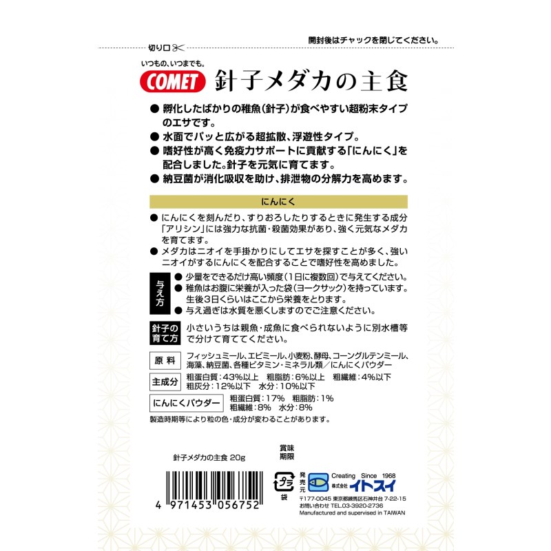 ・にんにくパウダー配合で嗜好性アップ、抗菌、殺菌効果により強く元気なメダカを育成します。