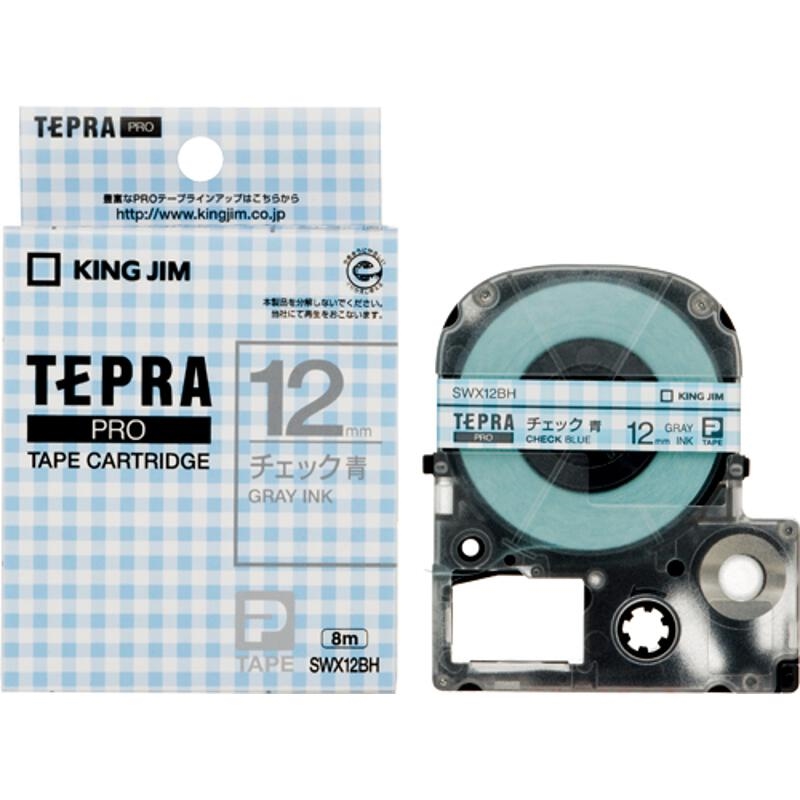 キングジム PROテ-プ チェック青/グレ-文字