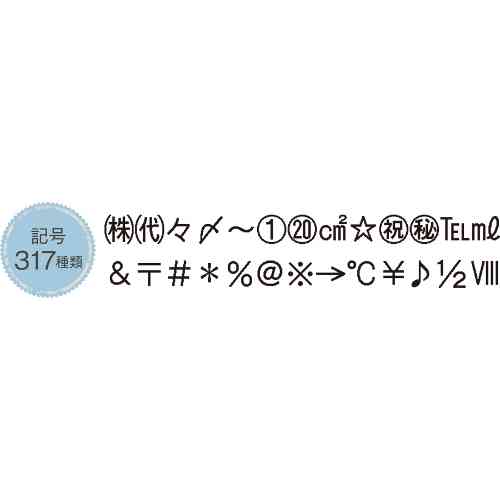 文字以外に動物モチーフなどのフレーム58種類、乗り物などを含めた絵文字484種類、スタンダードな記号が317文字、