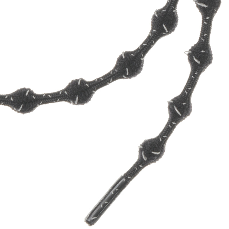 靴ひもに反射素材を撚り合わせることで、暗い場所で光が当たると反射します。