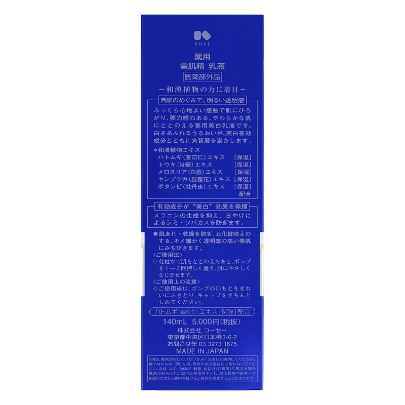 ふっくら心地よい感触で肌にひろがり、弾力感のある、やわらかでキメ細かく透明感の高い素肌にみちびく薬用美白乳液