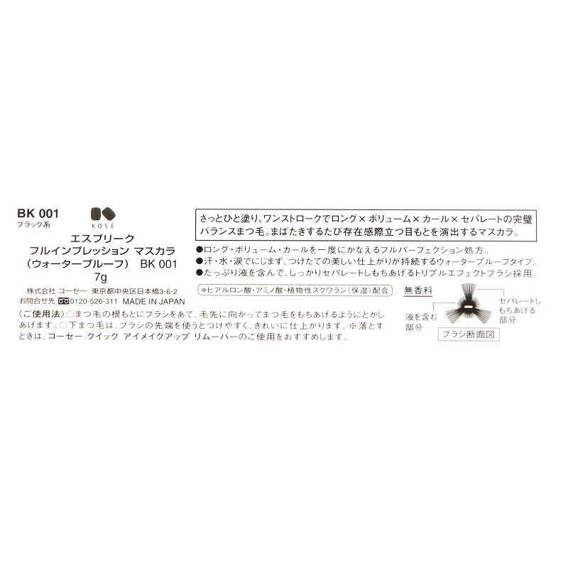コーセー エスプリーク フルインプレッションマスカラ(ウォータープルーフ)BK001ブラックケイ7g