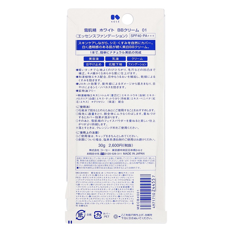 透明美肌BBクリーム。シミ、くすみを自然にカバーし、スキンケアしながら、すっぴん風な仕上りが持続します。