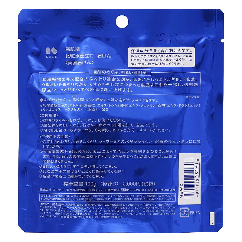ふんわり濃密泡 ! まるでエステ後のようなしっとりすべすべ、すっぴん透明感のある素肌に導く和漢化粧水仕立て石けん