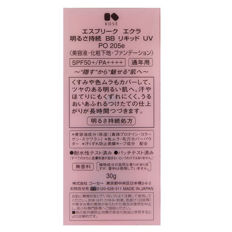 コーセー エスプリーク エクラ明るさ持続 BBリキッドUV PO205e