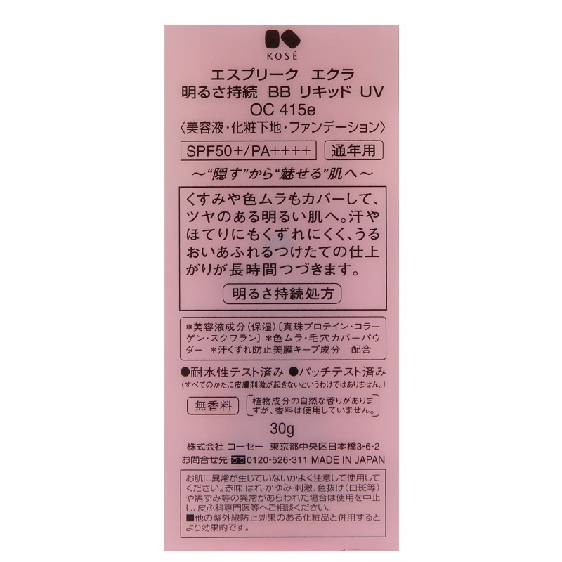コーセー エスプリーク エクラ明るさ持続 BBリキッドUV OC415e