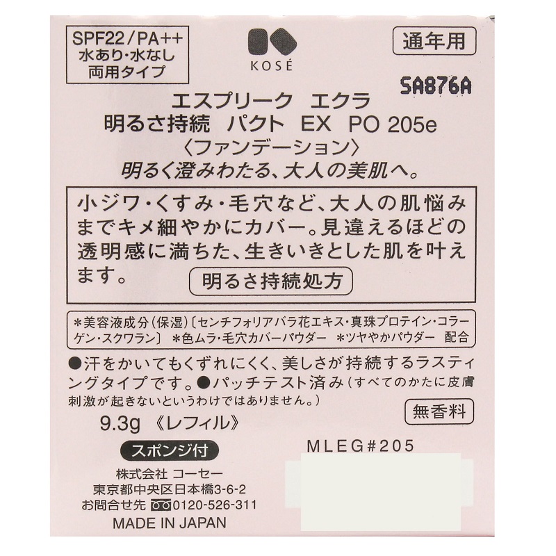 コーセー エスプリーク エクラ明るさ持続パクトEX PO205e