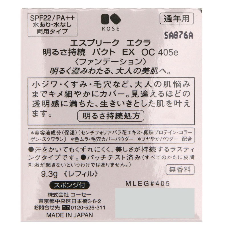 コーセー エスプリーク エクラ明るさ持続パクトEX OC405e