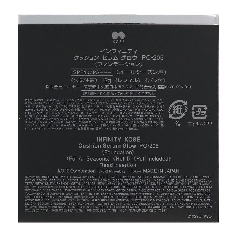 コーセー インフィニティ クッションセラムグロウ PO-205 ファンデーション