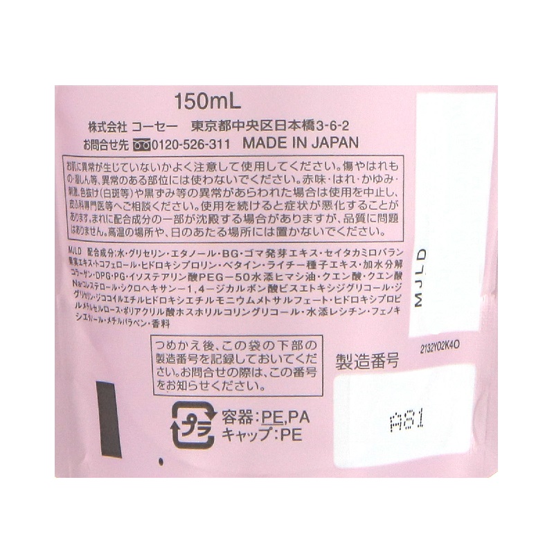 みずみずしい感触で角層深くまでうるおいで満たし、ハリ・ツヤあふれる肌に導く化粧水の詰替。