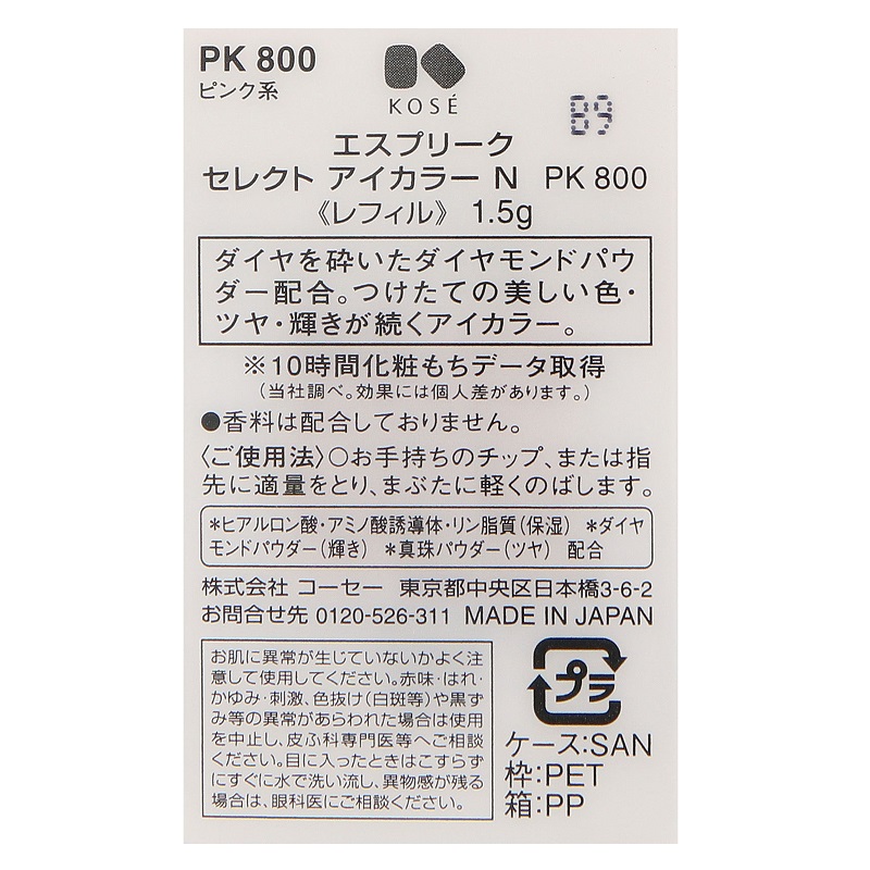 ダイヤを砕いたダイヤモンドパウダー配合で、つけたての美しい色・ツヤ・輝きが1日続く単色アイカラー。