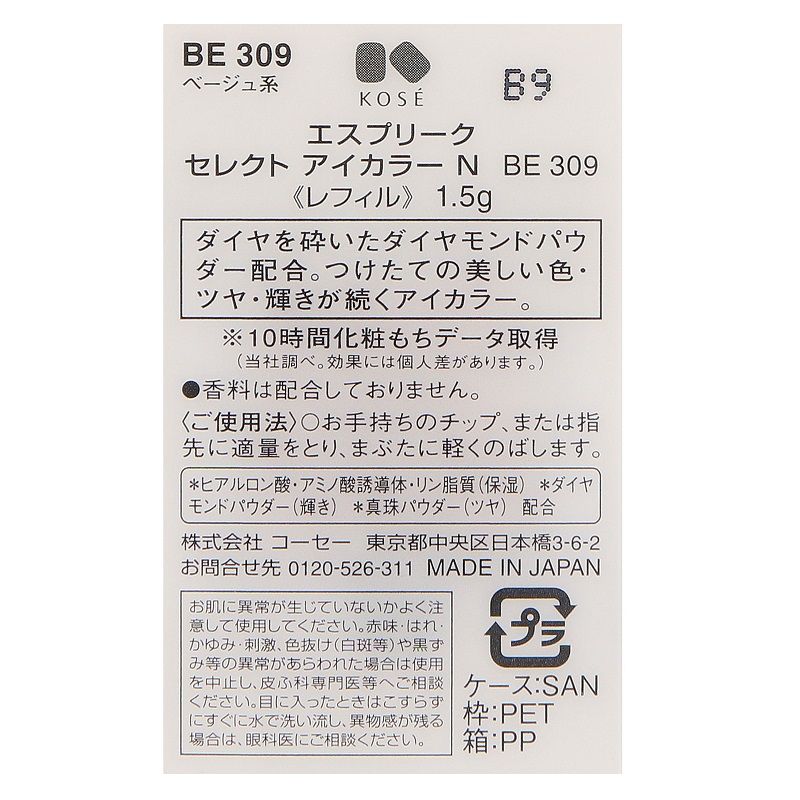 ダイヤを砕いたダイヤモンドパウダー配合で、つけたての美しい色・ツヤ・輝きが1日続く単色アイカラー。