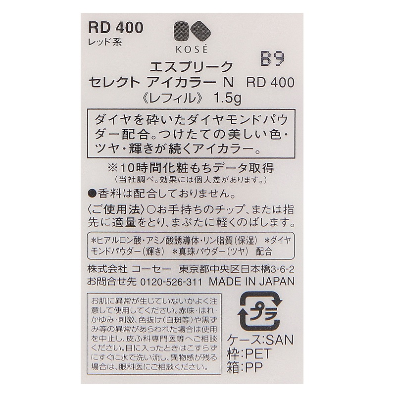 ダイヤを砕いたダイヤモンドパウダー配合で、つけたての美しい色・ツヤ・輝きが1日続く単色アイカラー。